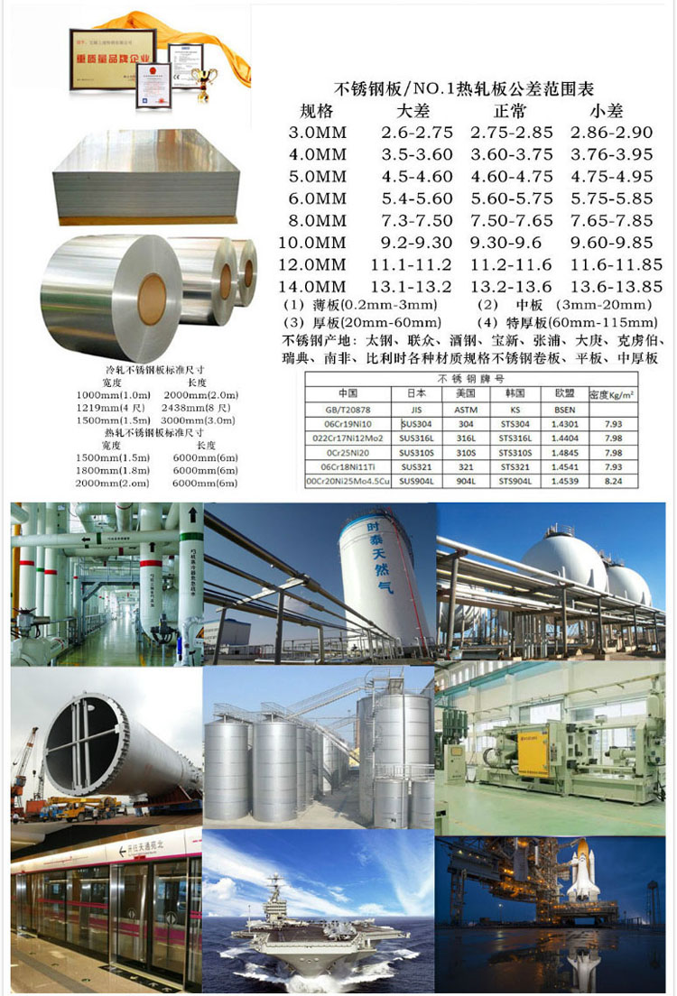 不銹鋼板一般是不銹鋼板和耐酸鋼板的總稱。不銹鋼板是指耐大氣、蒸汽和水等弱介質腐蝕的鋼板,而耐酸鋼板則是指耐酸、堿、鹽等化學浸蝕性介質腐蝕的鋼板。不銹鋼板 按制法分熱軋和冷軋的兩種,包括厚度0.5-4毫米的薄冷板和4.5-100毫米的中厚板。不銹鋼板都具有高溫抗氧化性,但是,氧化率會受暴露環(huán)境以及產(chǎn)品形態(tài)等固有因素的影響。
